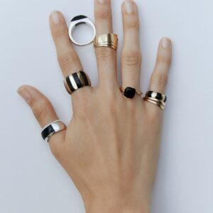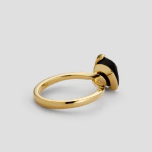 A graceful embrace, caught in motion. The Petal ring wraps recycled 18K gold around 3ct. cushion-cut Mpingo blackwood, following its form with quiet precision. The gold curves with intention, embracing the wood’s deep surface in a gesture of counterbalance. Elegant in form, understated in presence, with an undercurrent of bold energy held perfectly in check.
