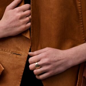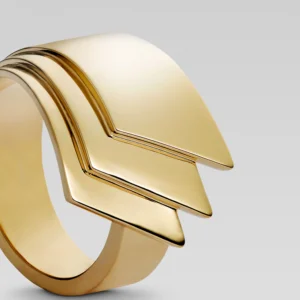 Crafted from recycled 18 karat gold, this handcrafted ring captures the timeless elegance of Carlo Scarpa’s Tomba Brion. Part of The Eternal Echoes Collection, it reflects a harmonious fusion of art, modernism, and philosophy. Certified by the Responsible Jewellery Council, it honours both craftsmanship and conscious luxury.