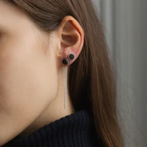 Our stunning earstick crafted in recycled sterling silver and adorned with a black, brilliant-cut 6mm Mpingo Blackwood diamond. This piece is the perfect addition to your treasured core collection of earrings. The earring features an architectural Danish design created in Copenhagen.